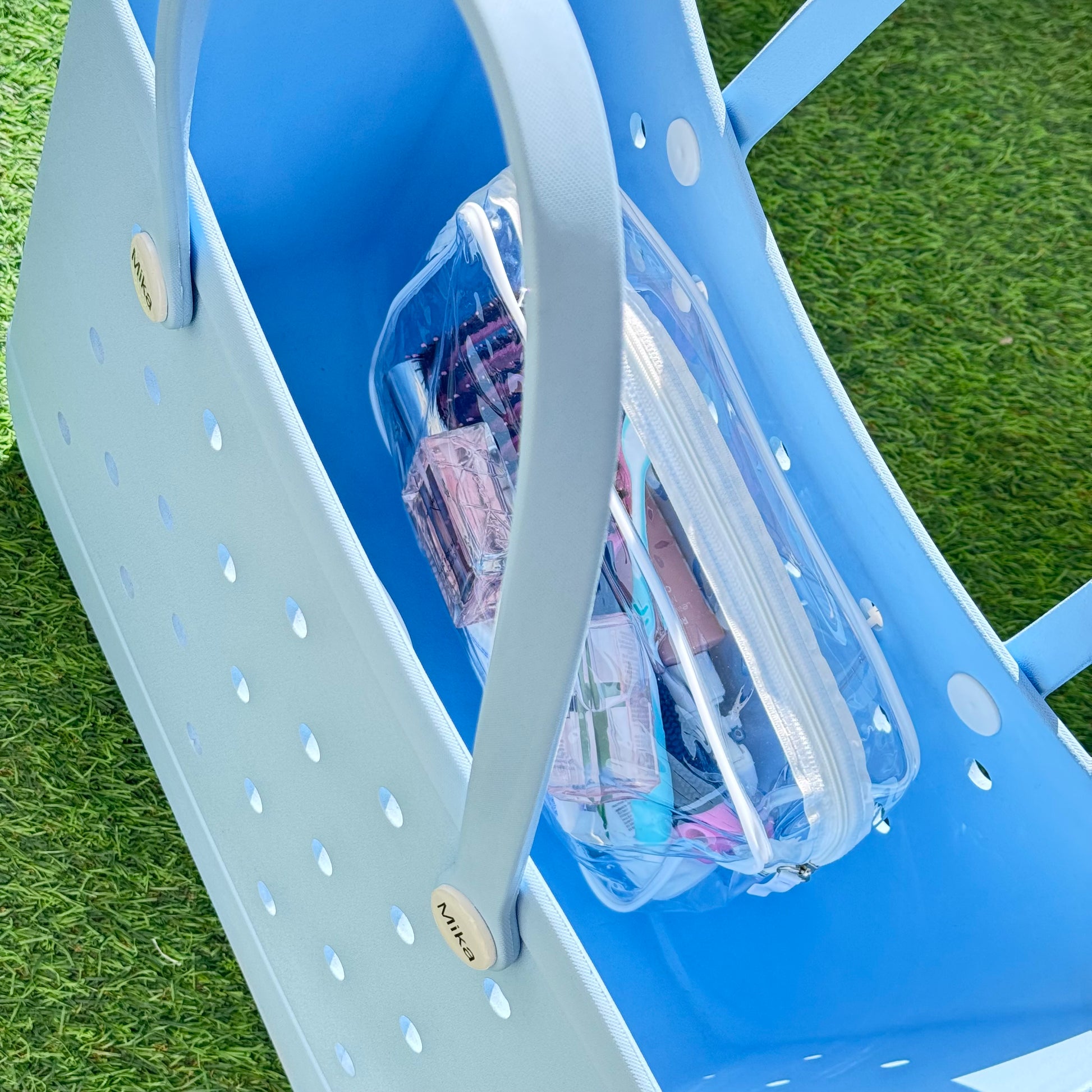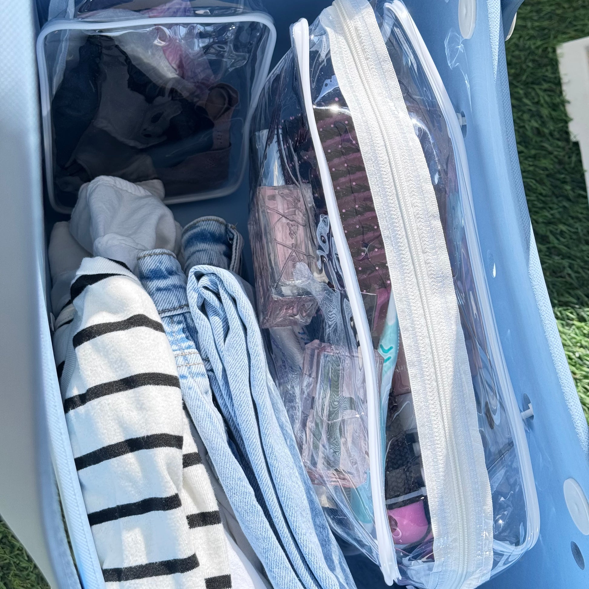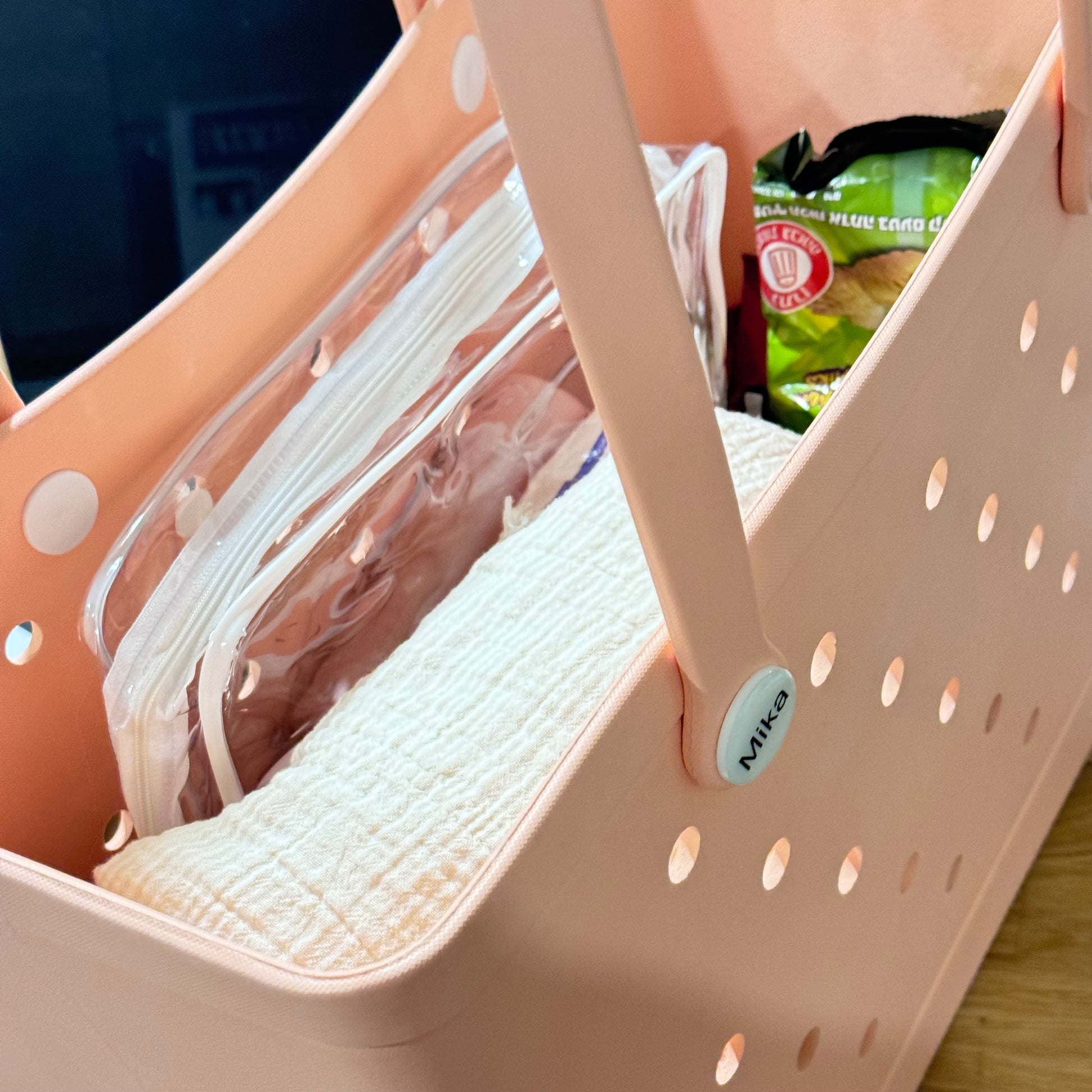 ערכת רחצה חכמה שני תיקי רחצה אחד גדול ואחד קטן שנתלים בקלות על תיקי מיקה